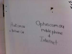 Is this for real? I snapped this on the back of a public toilet door. Are Optus and Audi really paying people to scrawl their ads on toilet doors with marker pen. Or does someone just love the brands so much they feel they have to share?